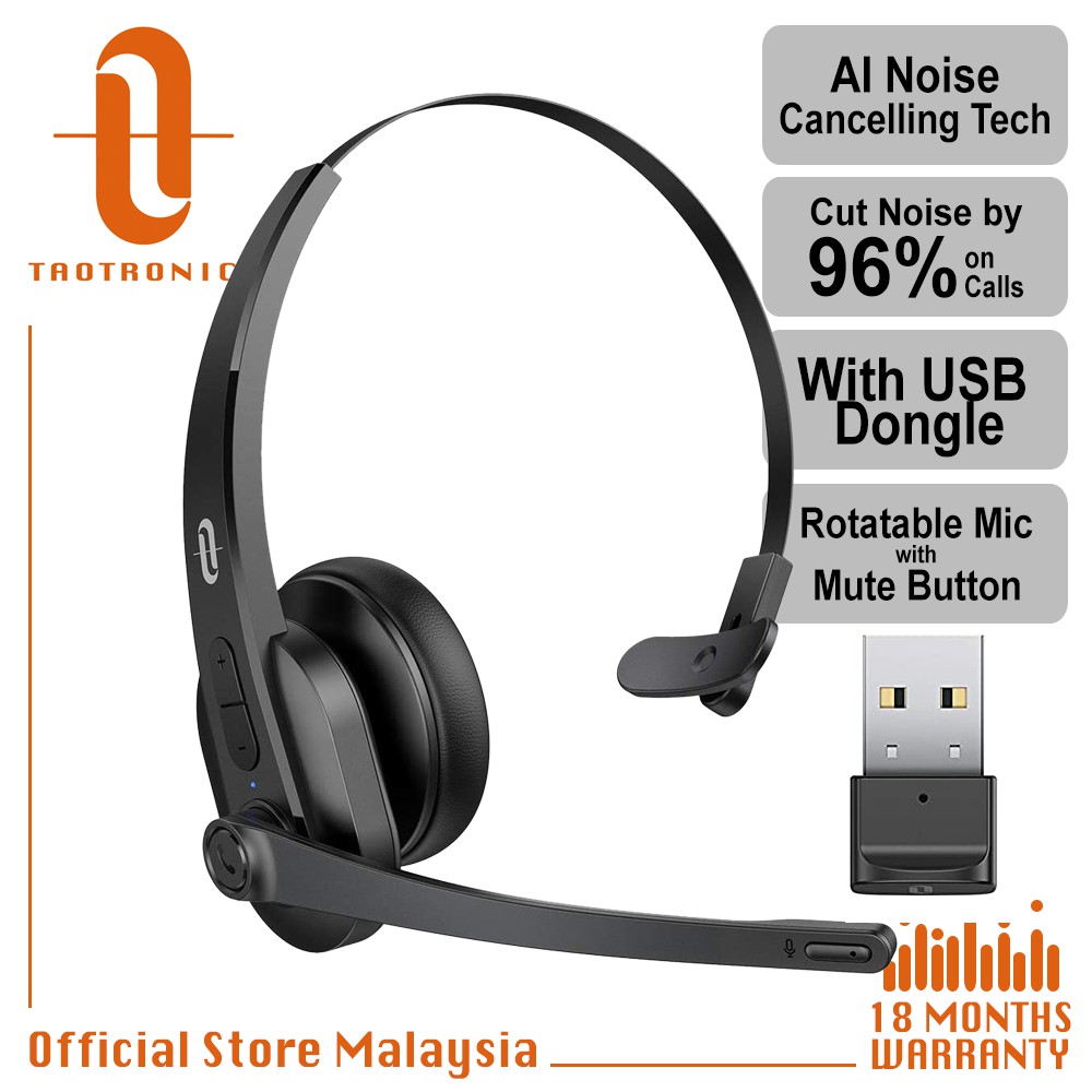 Using Headset with Dongle and PhoneComputer for Calls. With AI Noise Reduction Technology TaoTronics BH041 is the worlds first AI noise cancelling headset slashing background noise up to 40dB be heard clearly in noisy situations Advanced Qualcomm QCC3020 Chipset.